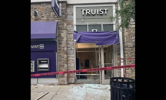 Το πρώτο περιστατικό συνέβη στις 4:30 (τοπική ώρα) το πρωί της Κυριακής, όταν κάποιος πυροδότησε εκρηκτικό μηχανισμό στο πεζοδρόμιο έξω από το ΑΤΜ στην Truist Bank στην Washington Place NE και στη συνέχεια έφυγε από το σημείο με ένα όχημα.