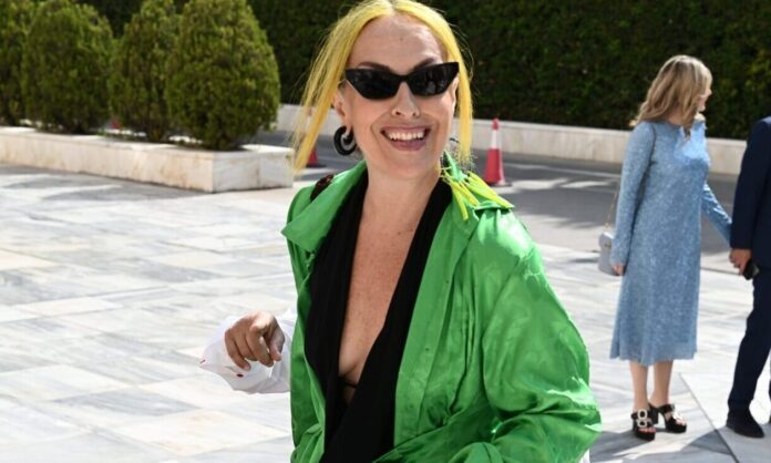 Η βουλευτής της Πλεύσης Ελευθερίας και τραγουδίστρια των «Μπλε», Τζώρτζια Κεφαλά, επέλεξε να φορέσει ένα κιμονό σε έντονο πράσινο χρώμα, μαύρη φόρμα με ντεκολτέ, μαύρα γυαλιά και σκουλαρίκια διαφορετικού σχήματος.