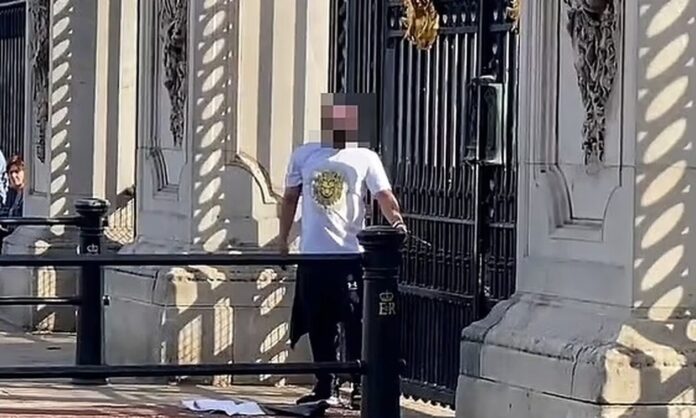 Συναγερμός σήμανε έξω από το παλάτι του Μπάκιγχχαμ το απόγευμα της Πέμπτης 6 Ιουλίου, καθώς ένας άνδρας δέθηκε με χειροπέδες στην κεντρική πύλη και απειλούσε να κάνει κακό στον εαυτό του.