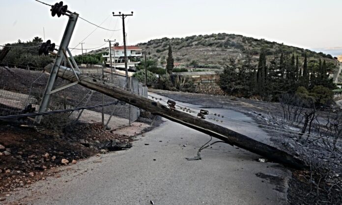 Διακοπές ρεύματος παρατηρούνται στις περιοχές της Νοτιοανατολικής Αττικής που πλήττονται από τις πυρκαγιές.