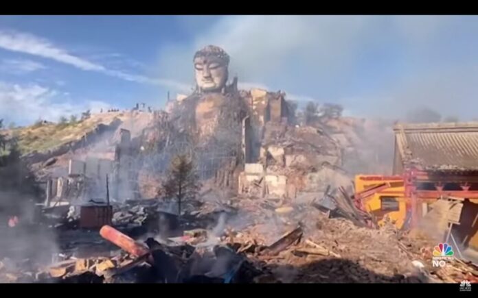 Στις φλόγες γιγάντιο άγαλμα του Βούδα στην Κίνα – Εντυπωσιακές εικόνες