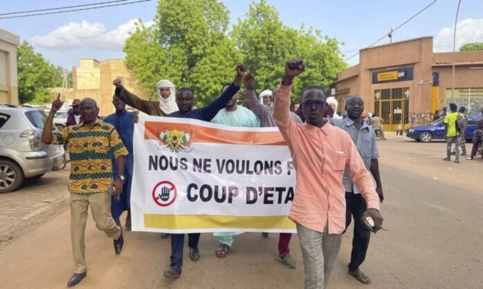 Η προεδρική φρουρά του Νίγηρα, που φέρεται ότι επιχειρεί πραξικόπημα, διέλυσε με προειδοποιητικά πυρά ένα πλήθος διαδηλωτών που είχε συγκεντρωθεί για να εκφράσει την υποστήριξή τους στον πρόεδρο Μοχάμεντ Μπαζούμ, ανέφερε ένας δημοσιογράφος του Γαλλικού Πρακτορείου.
