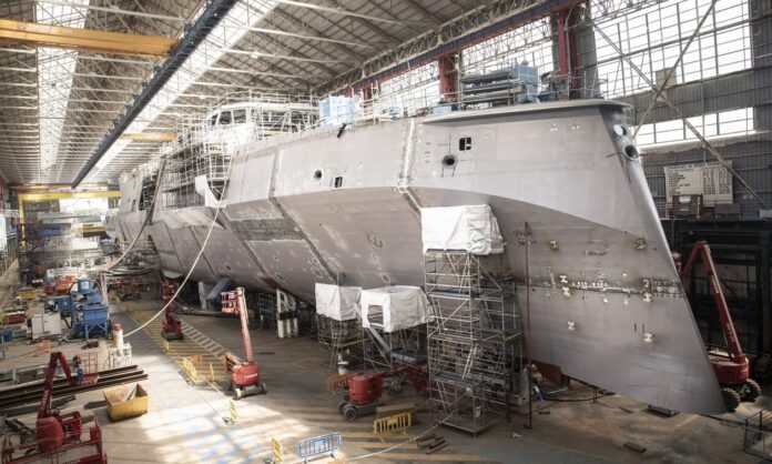 Η Naval Group δημοσίευσε στο twitter μια νέα φωτογραφία που δείχνει την μισοτελειωμένη φρεγάτα.