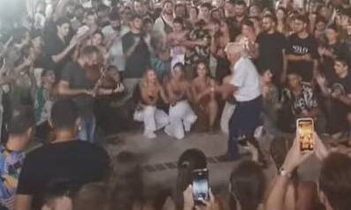 Όπως αναφέρει το tinostoday.gr, ο 86χρονος κατάγεται από το χωριό «Αγάπη» και χόρεψε τον «λεβέντικό χορό» υπό τους ήχους του βιολιού του Παναγιώτη Μάνεση.