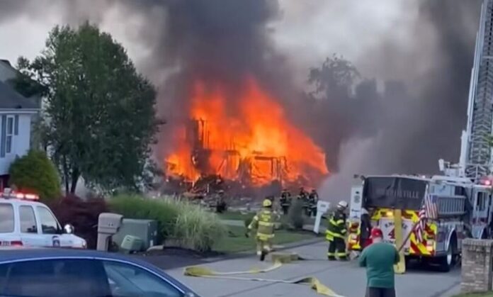 Ένα σπίτι φαίνεται να έχει εκραγεί, με άλλα δύο να τυλίγονται στις φλόγες, σύμφωνα με την εκπρόσωπο της κομητείας Allegheny, Amie Downs.