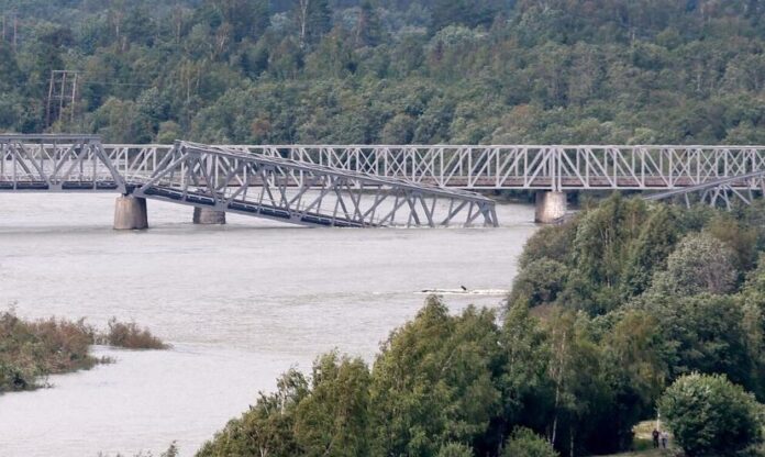 Η γέφυρα που βρίσκεται πάνω στη σιδηροδρομική γραμμή μεταξύ των πόλεων Αϊντσβόλ και Τρόντχαϊμ, είχε κλείσει για την κυκλοφορία την περασμένη εβδομάδα μετά τις πλημμύρες που προκάλεσε μια καταιγίδα.