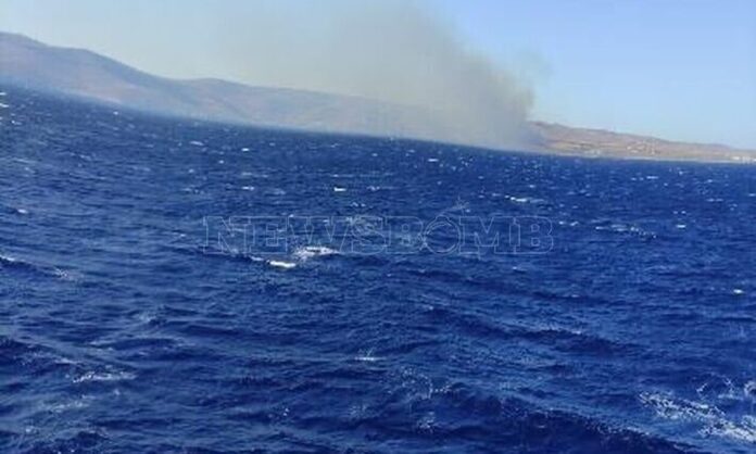 Σκάφη παρέλαβαν 20 άτομα στην Κύθνο για να τους απομακρύνουν από το σημείο που καίει ανεξέλεγκτη ακόμα η φωτιά