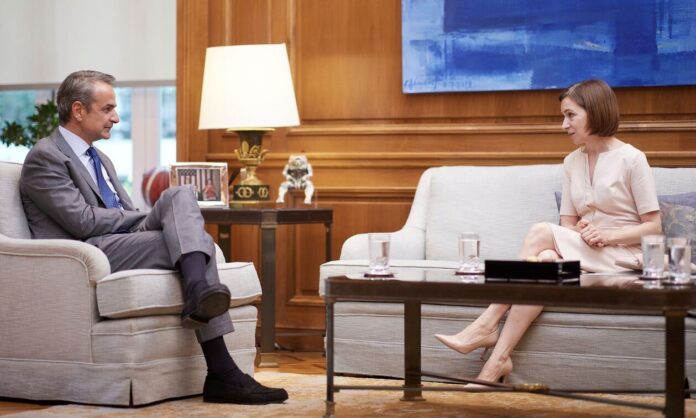Κατά τη διάρκεια της συνάντησης ο Πρωθυπουργός και η Πρόεδρος της Μολδαβίας αντάλλαξαν απόψεις για την προοπτική ενίσχυσης των διμερών σχέσεων. Ο Κυριάκος Μητσοτάκης επανέλαβε την στήριξη της Ελλάδας στην ευρωπαϊκή προοπτική της Μολδαβίας, η οποία εκφράστηκε και στην Διακήρυξη των Αθηνών που υιοθέτησαν στις 21 Αυγούστου οι 11 ηγέτες που συμμετείχαν στο άτυπο δείπνο που οργανώθηκε με πρωτοβουλία του Πρωθυπουργού, παρουσία της ηγεσίας των ευρωπαϊκών θεσμών.