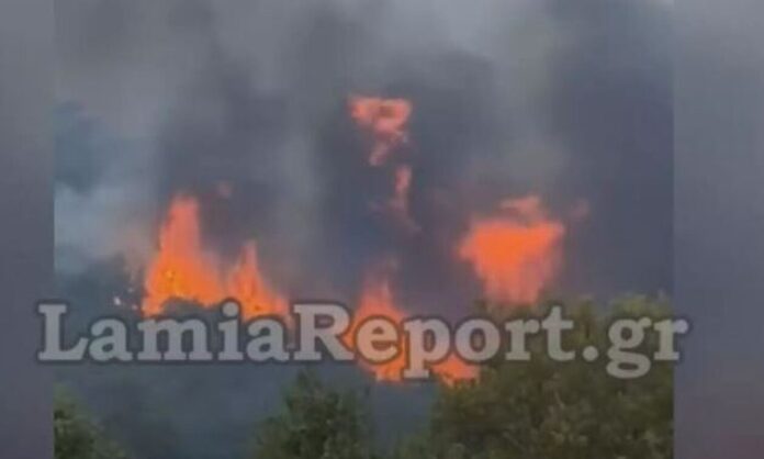 Η φωτιά άρχισε στη 1:15 το μεσημέρι στο ύψος των φαναριών της Μακρακώμης στην Εθνική Οδό Λαμίας – Καρπενησίου και γρήγορα επεκτάθηκε σε δασική έκταση.