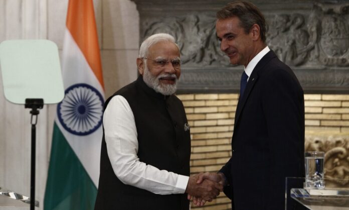 Η χθεσινή επίσημη επίσκεψη του πρωθυπουργού της Ινδίας, Ναρέντρα Μόντι στην Ελλάδα, καθώς και οι επαφές του στην Αθήνα με την Πρόεδρο της Δημοκρατίας, Κατερίνα Σακελλαροπούλου και τον Έλληνα ομόλογο του, Κυριάκο Μητσοτάκη αντικατοπτρίζει τη στόχευση του Μεγάρου Μαξίμου αφενός να θέσει σε τροχιά αναβάθμισης και στρατηγικής συνεργασίας τις σχέσεις της Ελλάδος με την Ινδία, ήτοι την 5η μεγαλύτερη οικονομία του πλανήτη, καθώς και πολυπληθέστερη χώρα στον κόσμο με πληθυσμό 1,4 δισ. και αφετέρου να αναδείξει τη χώρα μας σε πύλη της Ινδίας προς την Ευρωπαϊκή Ένωση, όπως αναφέρουν αρμόδιες κυβερνητικές πηγές.