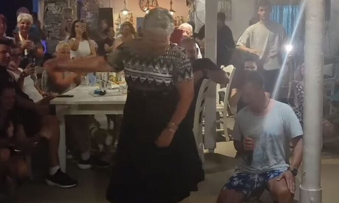 Ο Δημήτρης Μπάσης χτύπαγε παλαμάκια για την κυρά Βαγγελιώ που «μάγεψε» με το ζεϊμπέκικό της στη Σύρο