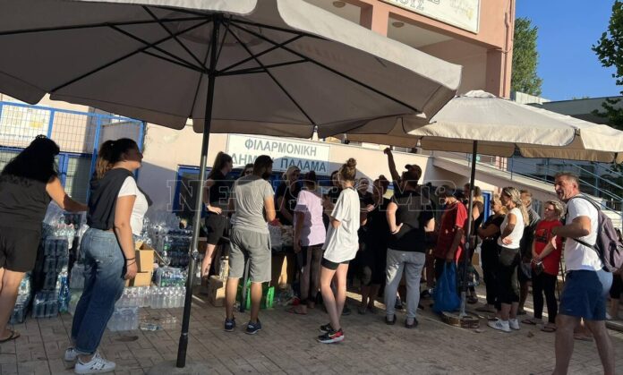 Κακοκαιρία Daniel: Μοιράζουν νερά στους πληγέντες μέσα στον πλημμυρισμένο Παλαμά (Vid)
