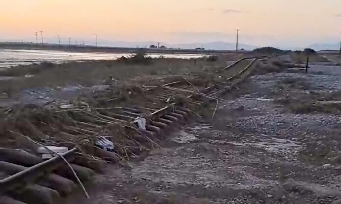 Σημαντικές φθορές και στο σιδηροδρομικό δίκτυο που περνάει από Θεσσαλία και Μαγνησία προκάλεσαν οι πλημμύρες από την κακοκαιρία Daniel όπως φαίνεται στο βίντεο από την γραμμή Λάρισας-Βόλος.