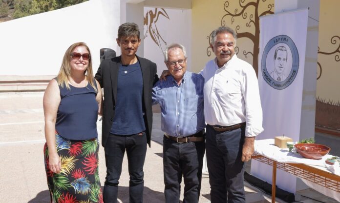 Αστυπάλαιας, κ. Λαμπρινή Γρηγόρη, ο κ. Δημήτρης Γιαννακόπουλος, Πρόεδρος του Ιδρύματος «Παύλος Γιαννακόπουλος», ο κ. Κώστας Παπαναγιώτου, συνεργάτης του Ιδρύματος «Παύλος Γιαννακόπουλος» και ο Δήμαρχος Αστυπάλαιας, κ. Νικόλαος Κομηνέας