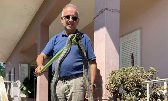 Κάτοικος της περιοχής ανήρτησε στον λογαριασμό του στο Facebook φωτογραφία με το μεγάλο φίδι.