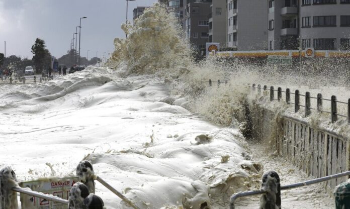 Στην τουριστική ακτή κοντά στο Κέιπ Τάουν, ισχυρές παλίρροιες σε συνδυασμό με βίαιους ανέμους προκάλεσαν κύματα ύψους 9,5 μέτρων το Σαββατοκύριακο, με το νερό να ξεπερνά τα αναχώματα και να πλημμυρίζει δρόμους και σπίτια κατά τόπους.