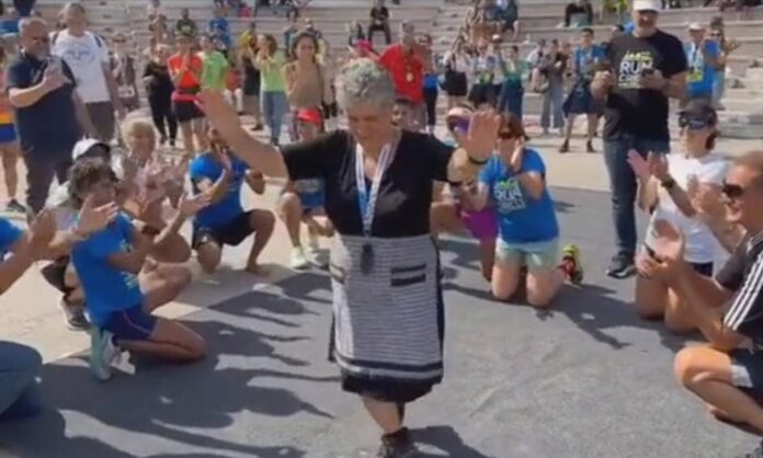 Η γιαγιά Αγγέλα όμως έτρεξε και στον αγώνα και μάλιστα στα 5 χιλιόμετρα. Όχι μόνο τερμάτισε αλλά στο τέλος το έριξε και στους κρητικούς χορούς κερδίζοντας το χειροκρότημα από πολλούς παρευρισκόμενους και αθλητές.