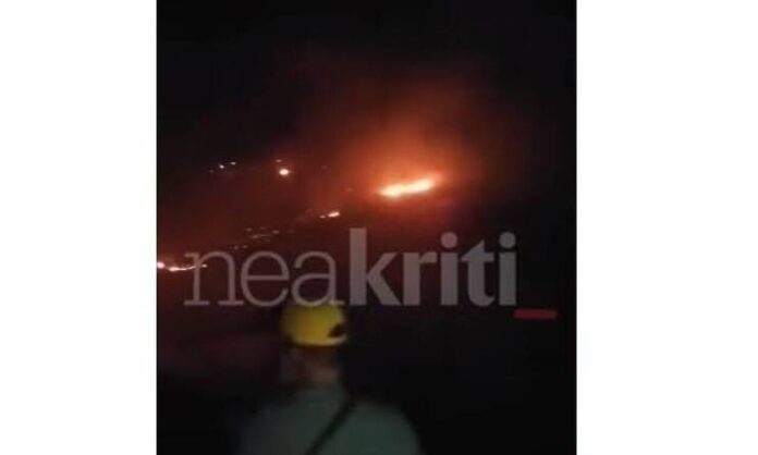 Στην περιοχή πνέουν ισχυροί άνεμοι που δυσχεραίνουν το έργο των πυροσβεστών, σύμφωνα με την ιστοσελίδα neakriti.