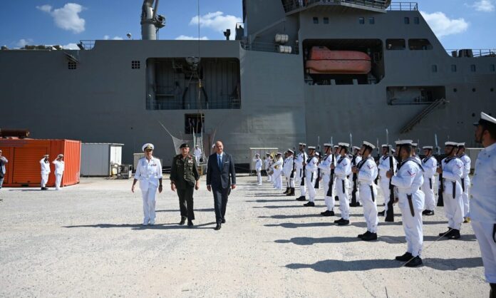 Δήλωση ΥΕΘΑ Ν. Δένδια από τον Ναύσταθμο Σαλαμίνος για την ένταξη του PERSEAS I στο Π.Ν. και για την επίθεση κατά του Ισραήλ