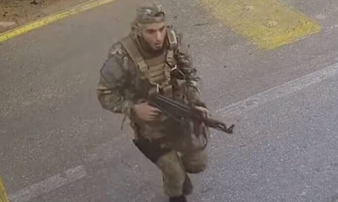 Η κάμερα κλειστού κυκλώματος αποκαλύπτει τη στιγμή που ένοπλος της Χαμάς μπήκε στο Κιμπούτς Μπέερι όπου μαζί με τους συνενχους του σφαγίασαν περισσότερους από 100 αμάχους.