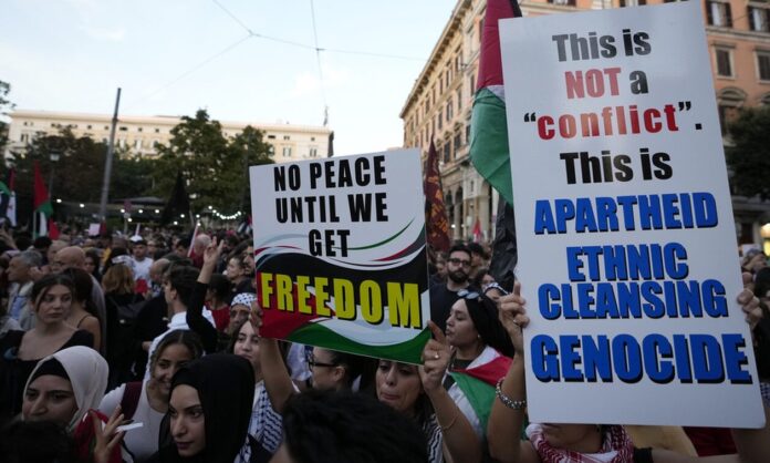 Περίπου χίλιοι μαθητές και φοιτητές διαδήλωσαν χθες το απόγευμα στη Ρώμη, σε ένδειξη αλληλεγγύης προς τον παλαιστινιακό λαό και με αίτημα την προστασία των αμάχων που ζουν στη Γάζα.