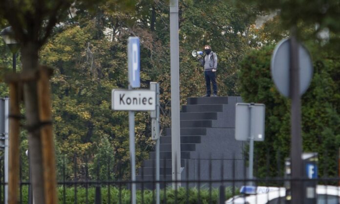Το ιδιωτικό τηλεοπτικό κανάλι Polsat News μετέδωσε ότι γύρω στις 14.30 (ώρα Ελλάδας) ο άνδρας κατέβηκε από το μνημείο, έβγαλε το μπουφάν του και παραδόθηκε, σηκώνοντας ψηλά τα χέρια.