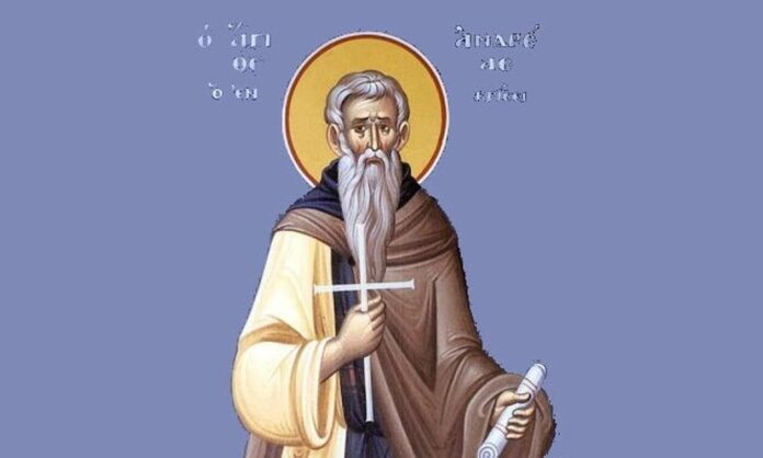 Σύμφωνα με το saint.gr, ο Οσιομάρτυρας Ανδρέας, καταγόταν από την Κρήτη και έζησε τον 8ο αιώνα μ.Χ. επί αυτοκράτορας Κωνσταντίνου Ε’ του Κοπρώνυμου.