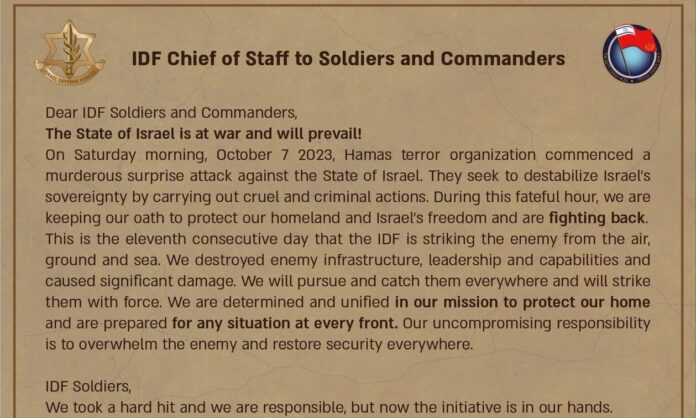 Μια ουσιαστική επιστολή του Αρχηγού του Γενικού Επιτελείου των IDF, υποστράτηγου Herzi Halevi, προς τους συναδέλφους του στρατιώτες, διοικητές και εφέδρους.
