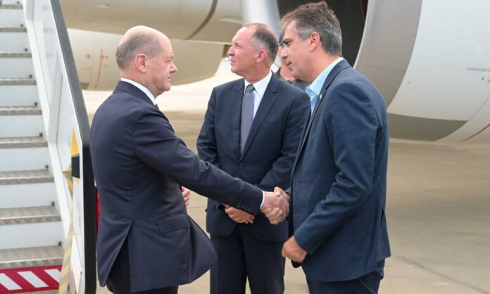 Προσγειώθηκε στο Ισραήλ ο Γερμανός καγκελάριος Όλαφ Σολτς, πριν από τις συναντήσεις με τον ισραηλινό πρωθυπουργό Μπενιαμίν Νετανιάχου, τον πρόεδρο Ισαάκ Χέρτσογκ και άλλους αξιωματούχους.