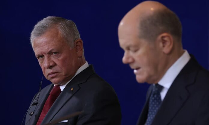 Ο βασιλιάς Αμπντάλα μίλησε σε συνέντευξη Τύπου με τον Γερμανό καγκελάριο Όλαφ Σολτς για τον πόλεμο στη Μέση Ανατολή
