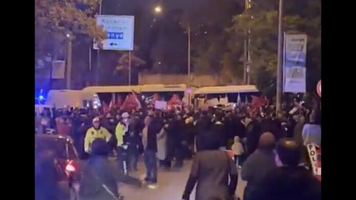 Τούρκοι πολίτες άρχισαν να συγκεντρώνονται μπροστά από την ισραηλινή πρεσβεία στην Άγκυρα.