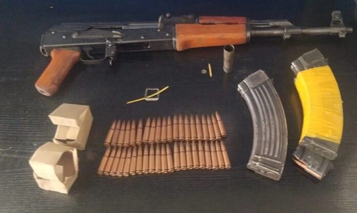 Σε έλεγχο που έγινε, εντοπίστηκε στην κατοχή του, και συγκεκριμένα μέσα στον σάκο που κουβαλούσε, ένα πολεμικό τυφέκιο τύπου καλάσνικοφ μαζί με τρεις γεμιστήρες και 140 φυσίγγια.