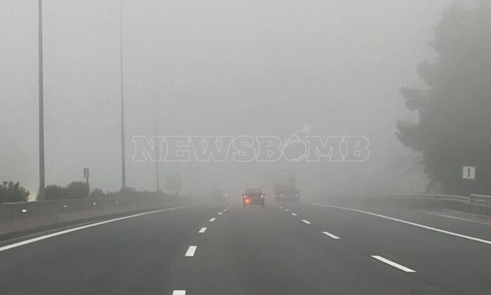 Χαμηλή είναι η ορατότητα για τους οδηγούς οχημάτων που διακινούνται στο οδικό δίκτυο της Αττικής Οδού προς αεροδρόμιο.