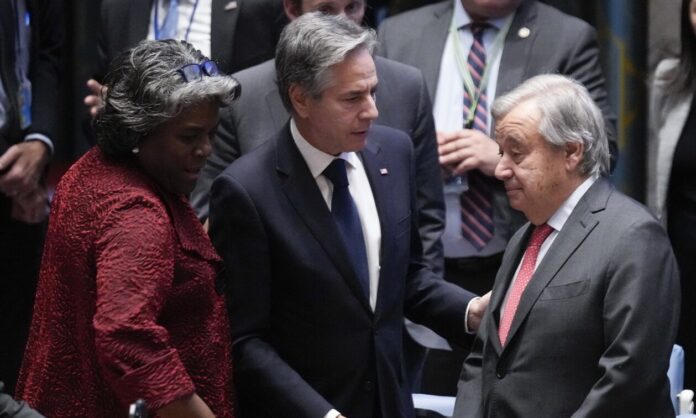 Από την πλευρά του ο Αμερικανός υπουργός Εξωτερικών, Άντονι Μπλίνκεν, επανέλαβε πως η Ουάσιγκτον υποστηρίζει το Ισραήλ στον πόλεμο εναντίον της Χαμάς, παρότι σημείωσε ότι πρέπει να λαμβάνονται «όλες οι πιθανές προφυλάξεις» για την προστασία των αμάχων. Υπενθυμίζοντας πως στην επίθεση της Χαμάς στο Ισραήλ σκοτώθηκαν υπήκοοι 30 και πλέον κρατών μελών του ΟΗΕ, επέμεινε στο ότι «όλοι μας έχουμε ευθύνη» στον αγώνα για να «κατανικηθεί η τρομοκρατία». Υπογράμμισε πως το Ισραήλ έχει «δικαίωμα και υποχρέωση» να αμυνθεί, ωστόσο «ο τρόπος που το κάνει έχει σημασία». «Οι παλαιστίνιοι άμαχοι πρέπει να προστατευτούν. Αυτό σημαίνει ότι η Χαμάς πρέπει να πάψει να τους χρησιμοποιεί σαν ανθρώπινες ασπίδες, και το Ισραήλ πρέπει να λαμβάνει όλες τις πιθανές προφυλάξεις για να αποφεύγεται το να πάθουν κακό».