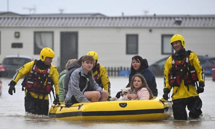 Πυροσβέστες χρησιμοποίησαν φουσκωτές λέμβους για να απομακρύνουν οδηγούς και επιβάτες οχημάτων που εγκλωβίστηκαν σε πλημμυρισμένους δρόμους, ενώ 40.000 σπίτια έμειναν χωρίς ρεύμα.