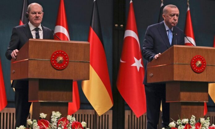 Ο καγκελάριος δεν αναμένεται να συναινέσει, δήλωσαν Γερμανοί αξιωματούχοι επικαλούμενοι διπλωματικές εντάσεις μεταξύ των συμμάχων του ΝΑΤΟ και της Τουρκίας, που αφορούν την απόκτηση συστημάτων αεράμυνας από τη Ρωσία, τις στρατιωτικές επιχειρήσεις κατά των κουρδικών δυνάμεων στη Συρία και την καθυστέρηση στην επικύρωση του πρωτοκόλλου ένταξης της Σουηδίας στη Βορειοατλαντική Συμμαχία.