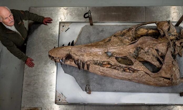 Το απολίθωμα του κρανίου που έφεραν στο φως οι επιστήμονες έχει μήκος 2 μέτρα και είναι ένα από τα πληρέστερα δείγματα του είδους του που έχουν ανακαλυφθεί ποτέ.