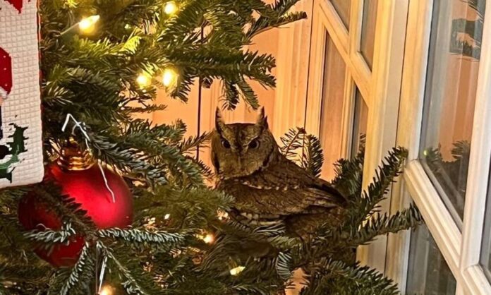 Έκπληκτη μία οικογένεια στο Κεντάκι των ΗΠΑ ανακάλυψε ένα μωρό κουκουβάγια να έχει «βολευτεί» μέσα στο χριστουγεννιάτικο δέντρο της