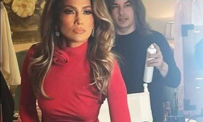 Η JLO μοιράστηκε τρία καρέ από την προετοιμασία της, με το φόρεμα να τονίζει τις εντυπωσιακές αναλογίες της.