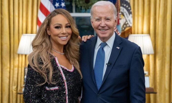 Τον Λευκό Οίκο επισκέφθηκε η Μαράια Κάρεϊ προκειμένου να σκορπίσει λίγη από την εορταστική της λάμψη.
