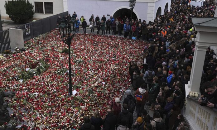 Φοιτητές και καθηγητές σχημάτισαν ανθρώπινη αλυσίδα στη μνήμη των 14 θυμάτων της επίθεσης στη Σχολή Καλών Τεχνών στην Πράγα