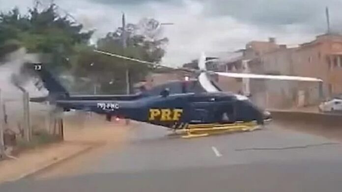Ένα ελικόπτερο της αστυνομίας την στιγμή που μετέφερε έναν τραυματισμένο αυτοκινητιστή έκανε αναγκαστική προσγείωση σε δρόμο της Βραζιλίας.