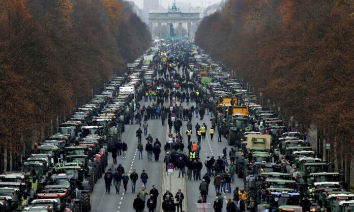 Οι Γερμανοί αγρότες αναμένεται να γεμίσουν σήμερα (15/1) τους δρόμους γύρω από την Πύλη του Βραδεμβούργου σε μια μαζική διαμαρτυρία για να ζητήσουν επανεξέταση των σχεδίων για υψηλότερους φόρους στις γεωργικές δραστηριότητες.