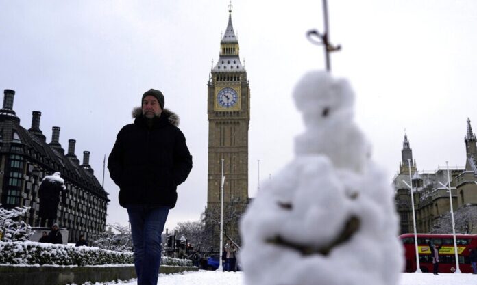Ένα «ψυχρό κύμα αέρα της Αρκτικής» μετακινήθηκε νότια σε ολόκληρη τη χώρα τις τελευταίες ημέρες, καθιστώντας την κατά 5-6 βαθμούς Κελσίου χαμηλότερη από το συνηθισμένο για αυτήν την εποχή του χρόνου, ανακοίνωσε η Μετεωρολογική Υπηρεσία. Οι Αρχές έχουν εκδώσει κίτρινες προειδοποιήσεις για χιόνι και πάγο που καλύπτουν μεγάλες εκτάσεις του βόρειου μισού του Ηνωμένου Βασιλείου μέχρι την Πέμπτη, καθώς η χώρα αντιμετωπίζει διακοπή στις μετακινήσεις και εκτεταμένα μπλακ άουτ.