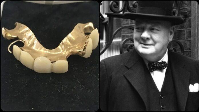 Ο Τσόρτσιλ, ο πρωθυπουργός της Βρετανίας κατά τη διάρκεια του Β’ Παγκοσμίου Πολέμου, είχε πολλά σετ άνω οδοντοστοιχιών που κατασκευάστηκαν ειδικά για να καλύπτουν το τραύλισμά του και ήταν τοποθετημένα σε χρυσή μασέλα, σύμφωνα με την εταιρεία δημοπρασιών Cotswold Auction Company, η οποία διοργανώνει την πώληση στις 6 Φεβρουαρίου.