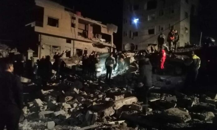 Η συριακή κρατική τηλεόραση μετέδωσε πλάνα που εικονίζουν σωστικά συνεργεία να ψάχνουν στα συντρίμμια κτηρίου που κατέρρευσε και να μεταφέρουν θύμα με φορείο.