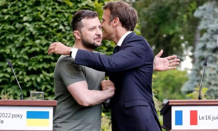 Οι πρόεδροι της Γαλλίας και της Ουκρανίας Εμανουέλ Μακρόν και Βολοντίμιρ Ζελένσκι συζήτησαν σήμερα κατά τη διάρκεια μιας τηλεφωνικής συνδιάλεξης την κατάσταση στο μέτωπο και τις «ανάγκες της Ουκρανίας» σε όπλα και πυρομαχικά.