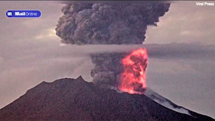 Το Σακουρατζίμα, ένα στρατοηφαίστειο στα νότια της Ιαπωνίας, άρχισε να εκτοξεύει λάβα το απόγευμα της Τετάρτης, με την έκρηξη να συνεχίζεται την Πέμπτη.