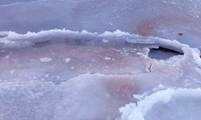 Ως μέρος της περιβαλλοντικής παρακολούθησης που πραγματοποιήθηκε από το NSCMB FEB RAS στην περιοχή του Θαλάσσιου Βιολογικού Σταθμού Βοστόκ, στις 5 Φεβρουαρίου, καταγράφηκε το συγκεκριμένο έγχρωμο φυσικό φαινόμενο στον κόλπο Βοστόκ (κοντά στη θάλασσα της Ιαπωνίας), δηλαδή ο χρωματισμός του πάγου με κόκκινο χρώμα.