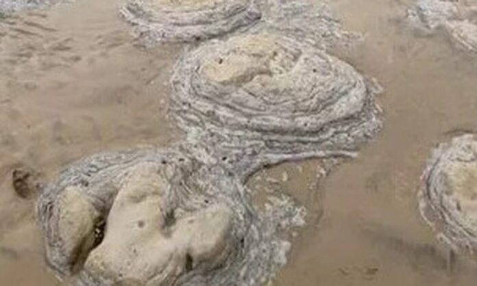Η παλίρροια και οι έντονες βροχοπτώσεις, έκαναν ορατούς τους βράχους που έκρυβε η θάλασσα και αποκάλυψε τα ίχνη των δεινοσαύρων